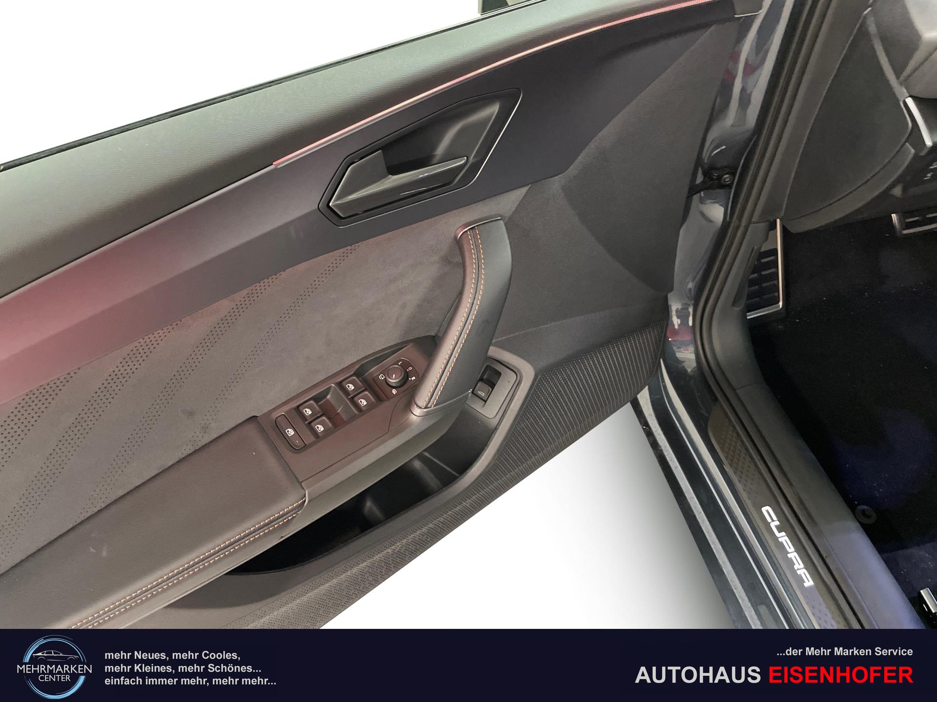 Innenausstattung CG - CUPRA Sportschalensitze vorne mit Sitzmittelbahn in Dinamica, Schwarz mit Blau Akzenten