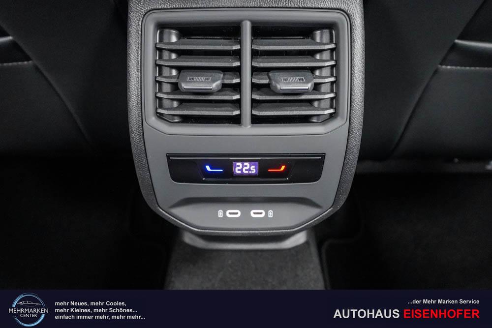 Beifahrersitz höhenverstellbar, Fahrersitz höhenverstellbar, Lederlenkrad, Lendenwirbelstütze, Sitzbezug Stoff, geteilt umklappbare Rücksitzlehne, Lenkrad höhenverstellbar, Beheizbares Lenkrad, Multifunktionslenkrad, Isofix, abgedunkelte Scheiben, 19 Zoll Alufelgen Sandstorm Kupfer, Dachreling schwarz, ABS, Alarmanlage, Außenspiegel elektrisch anklappbar, Fensterheber elektrisch, Seitenairbags, Servolenkung, Sitzheizung, ESP, Wegfahrsperre, Zentralverriegelung mit Funk, Beifahrerairbag, Fahrerairbag, Parkpilot hinten, Parkpilot vorne, Reifendruckkontrolle, Digital Cockpit, Anhängekupplung schwenkbar, Tempomat Abstand ACC, Spurhalteassistent plus, Side Assist, Verkehrszeichenerkennung, Full LED-Scheinwerfer, LED-Tagfahrlicht, Rückfahrkamera, Intelligent Park Assist, Elektrische Heckklappe inkl. Virtual Pedal, KeylessEntry, StartStopSystem, Notrufsystem, Klimaautomatik 3-Zonen, 360-Grad-Kamera, Freisprecheinrichtung, Induktionsladestation, USB, Radio, Bluetooth, Bordcomputer, Full Link, Exit Assist, Smart Wraparound Light, Stauassistent, Pre-Crash,