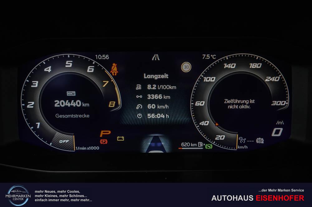 Beifahrersitz höhenverstellbar, Fahrersitz höhenverstellbar, Lederlenkrad, Mittelarmlehne vorne, Lenkrad höhenverstellbar, Sitzbezug Dinamica, Ambiente-Beleuchtung, Elektrisch verstellbarer Fahrersitz mit Memory Funktion, Beheizbares Lenkrad, Supersportlenkrad, Isofix, abgedunkelte Scheiben, 19 Zoll Alufelgen Sandstorm, Dachreling schwarz, ABS, Alarmanlage, Außenspiegel elektrisch, Fensterheber elektrisch, Seitenairbags, Servolenkung, Sitzheizung vorn, DCC, ESP, Wegfahrsperre, Zentralverriegelung mit Funk, Außenspiegel beheizbar, Beifahrerairbag, Fahrerairbag, Parkpilot hinten, Parkpilot vorne, Reifendruckkontrolle, Digital Cockpit, Anhängekupplung schwenkbar inkl. Trailer Assist, Tempomat Abstand ACC, Fernlichtassistent, Spurhalteassistent plus, Totwinkelassistent, Verkehrszeichenerkennung, Full LED-Scheinwerfer, LED-Tagfahrlicht, Rückfahrkamera, Park-Assistent, Elektrische Heckklappe inkl. Virtual Pedal, KeylessEntry, StartStopSystem, Notrufsystem, Klimaautomatik 3-Zonen, 360-Grad-Kamera, Freisprecheinrichtung, Induktionsladestation, USB, Bluetooth, Bordcomputer, Radio-Navigationssystem, variabler Ladeboden, Full Link, Fahrprofilauswahl, erweiterte Herstellergarantie 5 Jahre/100.000km, Exit Assist, Stauassistent, Pre-Crash,
