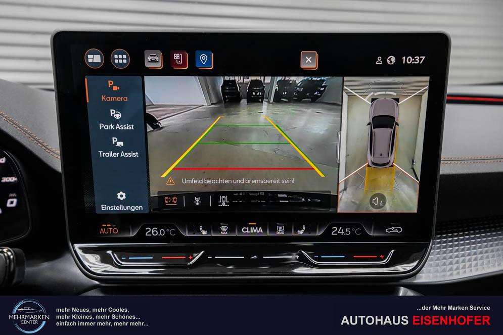 Beifahrersitz höhenverstellbar, Fahrersitz höhenverstellbar, Lederlenkrad, Mittelarmlehne vorne, Lenkrad höhenverstellbar, Sitzbezug Dinamica, Ambiente-Beleuchtung, Elektrisch verstellbarer Fahrersitz mit Memory Funktion, Beheizbares Lenkrad, Supersportlenkrad, Isofix, abgedunkelte Scheiben, 19 Zoll Alufelgen Sandstorm Kupfer, Dachreling schwarz, ABS, Alarmanlage, Außenspiegel elektrisch, Fensterheber elektrisch, Schiebedach, Seitenairbags, Servolenkung, Sitzheizung vorn, DCC, ESP, Wegfahrsperre, Zentralverriegelung mit Funk, Außenspiegel beheizbar, Beifahrerairbag, Fahrerairbag, Parkpilot hinten, Parkpilot vorne, Reifendruckkontrolle, Digital Cockpit, Anhängekupplung schwenkbar inkl. Trailer Assist, Tempomat Abstand ACC, Fernlichtassistent, Spurhalteassistent plus, Totwinkelassistent, Verkehrszeichenerkennung, LED Matrix Scheinwerfer, LED-Tagfahrlicht, Rückfahrkamera, Park-Assistent, Panoramadach, Elektrische Heckklappe inkl. Virtual Pedal, KeylessEntry, StartStopSystem, Notrufsystem, Klimaautomatik 3-Zonen, 360-Grad-Kamera, Android Auto, Apple Carplay, Freisprecheinrichtung, Induktionsladestation, USB, Bluetooth, Bordcomputer, Radio-Navigationssystem, variabler Ladeboden, Full Link, Fahrprofilauswahl, Exit Assist, erweiterte Herstellergarantie 5 Jahre/100.000km, Stauassistent, Pre-Crash, Cerenomy Light,