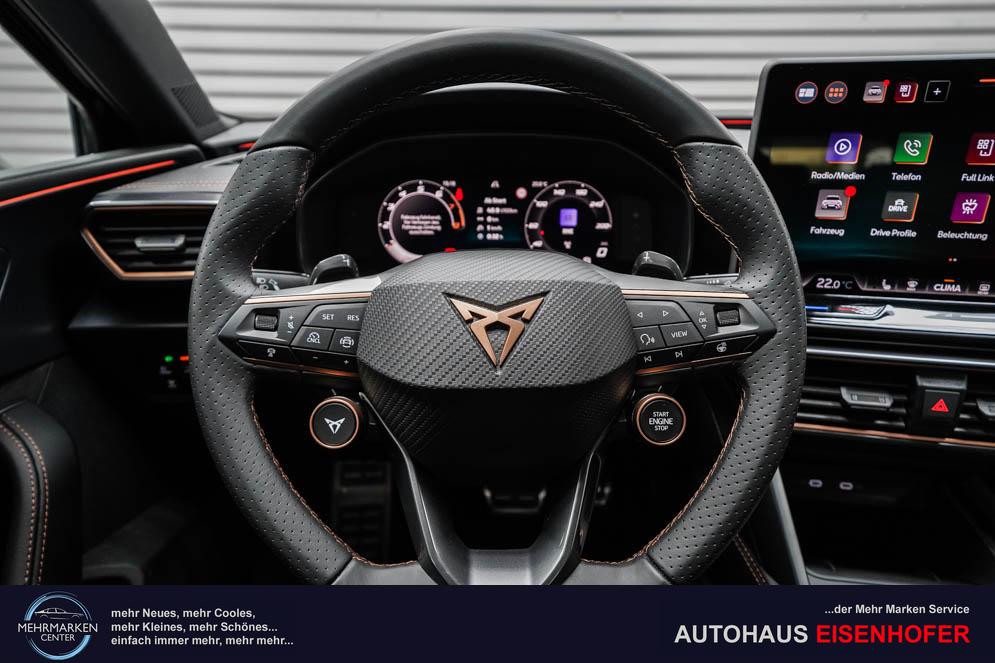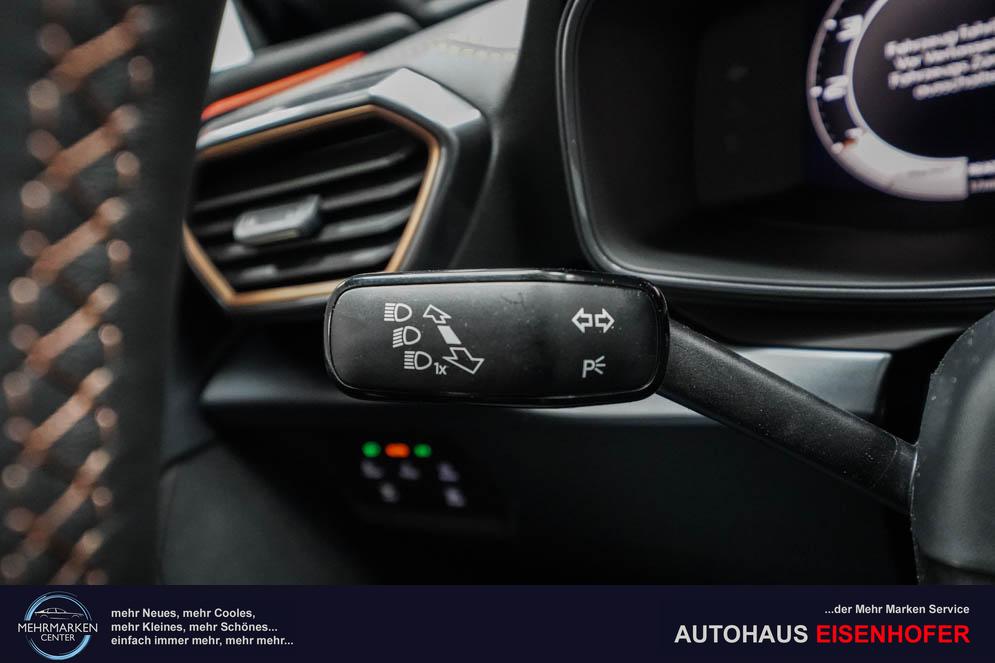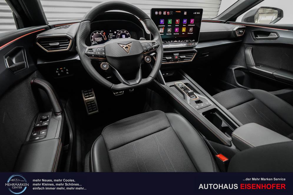 Beifahrersitz höhenverstellbar, Fahrersitz höhenverstellbar, Lederlenkrad, Mittelarmlehne vorne, Sitzbezug Stoff, Gepäckraumabdeckung, geteilt umklappbare Rücksitzlehne, Lenkrad höhenverstellbar, Smart Wraparound Light, Beheizbares Lenkrad, Multifunktionslenkrad mit Satellitenknöpfen, Isofix, Isofix Beifahrersitz, abgedunkelte Scheiben, 18 Zoll Alufelgen Garbi, Dachreling schwarz, ABS, Alarmanlage, Außenspiegel elektrisch anklappbar, Fensterheber elektrisch, Kopfairbags, Nebelscheinwerfer, Schiebedach, Seitenairbags, Servolenkung, Sitzheizung, ESP, Wegfahrsperre, Zentralverriegelung mit Funk, Außenspiegel beheizbar, Beifahrerairbag, Fahrerairbag, Parkpilot hinten, Parkpilot vorne, Reifendruckkontrolle, Regensensor, Lichtsensor, Digital Cockpit, Anhängekupplung schwenkbar, Tempomat Abstand ACC, Fernlichtassistent, Spurhalteassistent, Verkehrszeichenerkennung, Full LED Scheinwerfer, Tagfahrlicht, Pannenset, Rückfahrkamera, Panoramadach, Elektrische Heckklappe inkl. Virtual Pedal, KeylessEntry, StartStopSystem, Innenspiegel automatisch abbl., Müdigkeitswarnsystem, Notrufsystem, Schaltwippen, Klimaautomatik 3-Zonen, Geschwindigkeitsbegrenzer, Android Auto, Apple Carplay, Freisprecheinrichtung, Induktionsladestation, Sprachsteuerung, USB, Radio, Radio DAB, Bluetooth, Bordcomputer, Cupra Full Link, variabler Ladeboden,