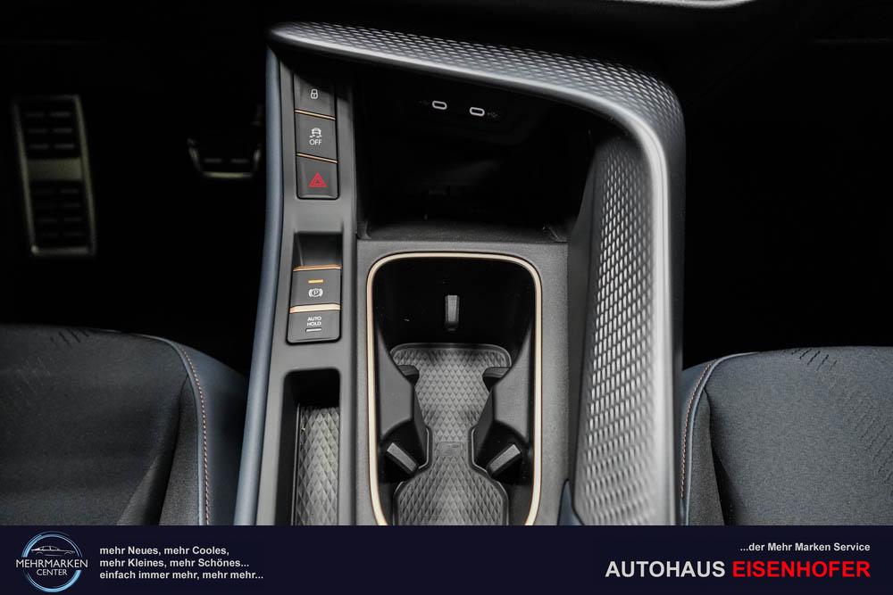 Beifahrersitz höhenverstellbar, Fahrersitz höhenverstellbar, Lederlenkrad, Lendenwirbelstütze, Mittelarmlehne vorne, Sitzbezug Stoff, Sportsitze, Gepäckraumabdeckung, geteilt umklappbare Rücksitzlehne, Lenkrad höhenverstellbar, Multifunktionssportlenkrad, Isofix, Isofix Beifahrersitz, abgedunkelte Scheiben, 19 Zoll Alufelgen Cosmic Copper, Dachreling schwarz, Außenspiegel in Wagenfarbe, Stoßfänger in Wagenfarbe, Türgriffe in Wagenfarbe, ABS, Alarmanlage, Außenspiegel elektrisch anklappbar einstellbar, Fensterheber elektrisch, Kopfairbags, Nebelscheinwerfer, Schiebedach, Seitenairbags, Servolenkung, Sitzheizung, ESP, Wegfahrsperre, Zentralverriegelung mit Funk, Außenspiegel beheizbar, Beifahrerairbag, Fahrerairbag, Parkpilot hinten, Parkpilot vorne, Reifendruckkontrolle, Head-up Display, Regensensor, Lichtsensor, Digital Cockpit 10,25 Zoll, Anhängekupplung schwenkbar, Tempomat Abstand ACC, Spurhalteassistent, Verkehrszeichenerkennung, LED-Scheinwerfer, LED-Tagfahrlicht, Pannenset, Rückfahrkamera, Panoramadach, Elektrische Heckklappe inkl. Virtual Pedal, KeylessEntry, StartStopSystem, Innenspiegel automatisch abbl., Abstandswarner, Müdigkeitswarnsystem, Notrufsystem, Schaltwippen, Klimaautomatik 3-Zonen, Geschwindigkeitsbegrenzer, Android Auto, Apple Carplay, Freisprecheinrichtung, Induktionsladestation, Sprachsteuerung, Touchscreen, USB, Radio DAB, Bluetooth, Bordcomputer, Radio-Navigationssystem, Musikstreaming integriert, Wired und Wireless App-Connect, erweiterte Herstellergarantie 3 Jahre/90.000km, variabler Ladeboden,