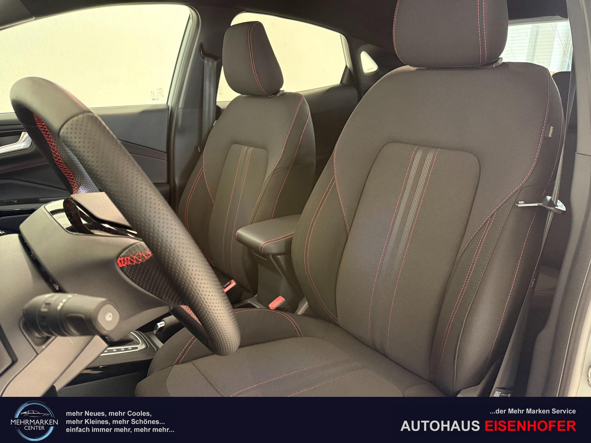 Innenausstattung Stoffpolsterung in Anthrazit mit Ziernähten in Rot