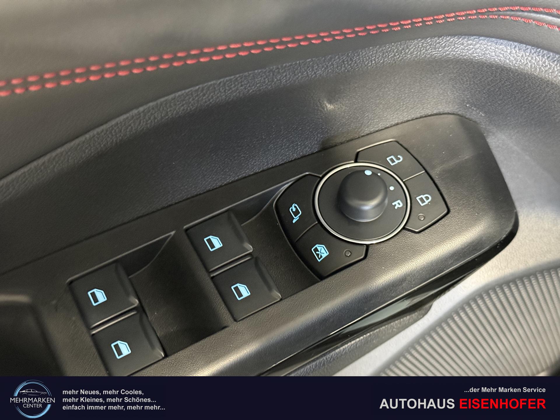 Innenausstattung Stoffpolsterung in Anthrazit mit Ziernähten in Rot
